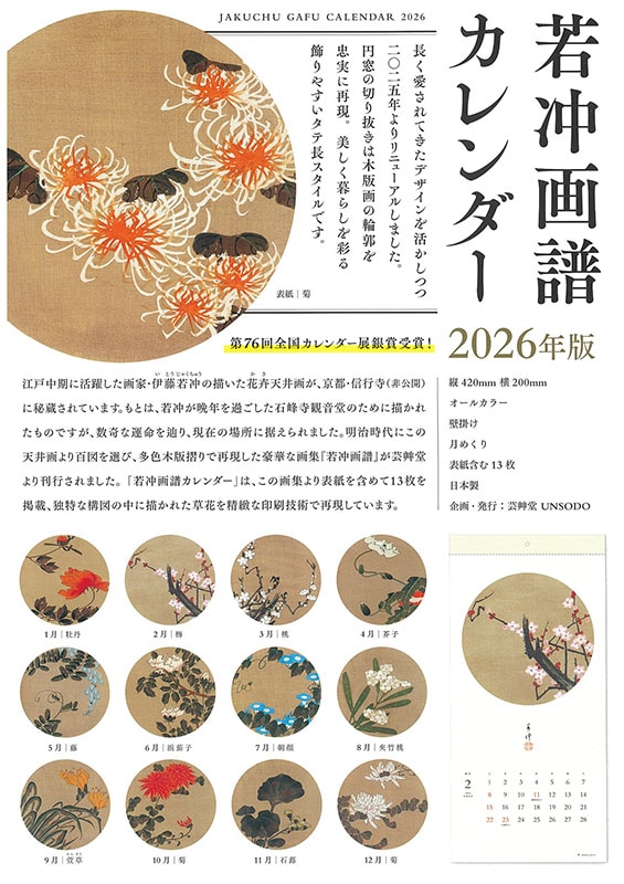 伊藤若冲 若冲画譜 カレンダー 2026