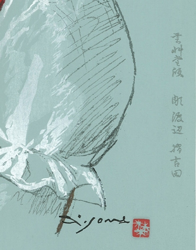 岡 信孝(おか のぶたか) 清水の春 木版画