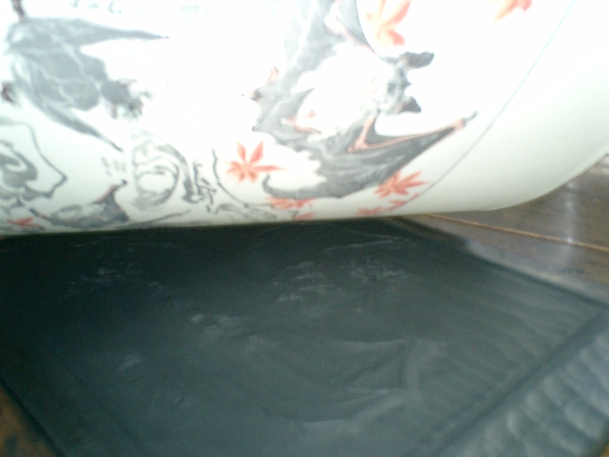 年月を経た版木は傷みもあり、墨版の線をきれい