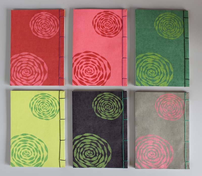 「菊文様」を手摺木版で和紙に摺り上げました。